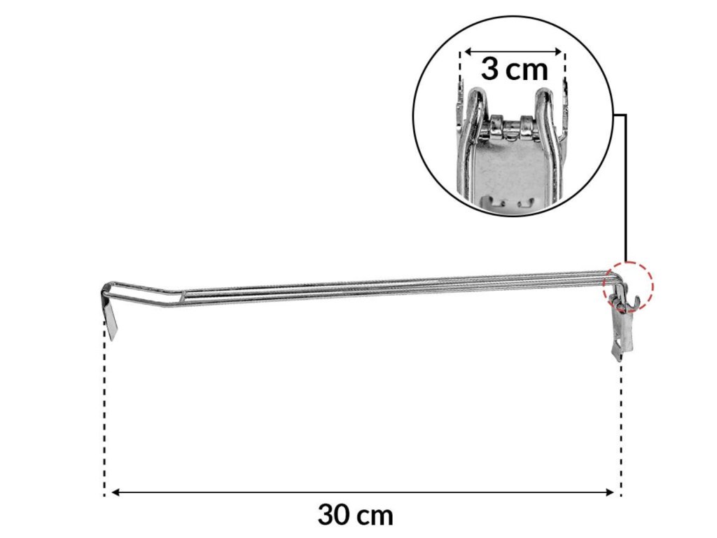 Dvojitý závěsný háček na zadní europerforovanou stěnu, 30 cm, s ramenem pro klip