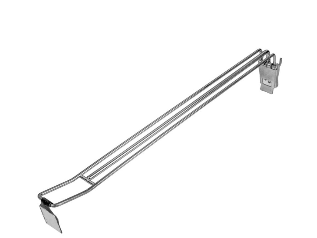 Dvojitý závěsný háček na zadní europerforovanou stěnu, 30 cm, s výsuvným ramenem pro klip (použitý)