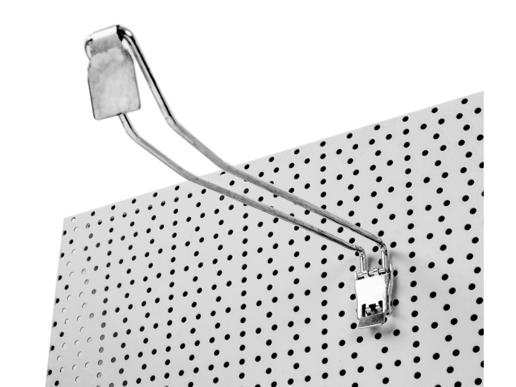 Možnost zavěšení na libovolné místo perforace umožňuje rychlou změnu uspořádání a přizpůsobení rozměrům vystaveného zboží.