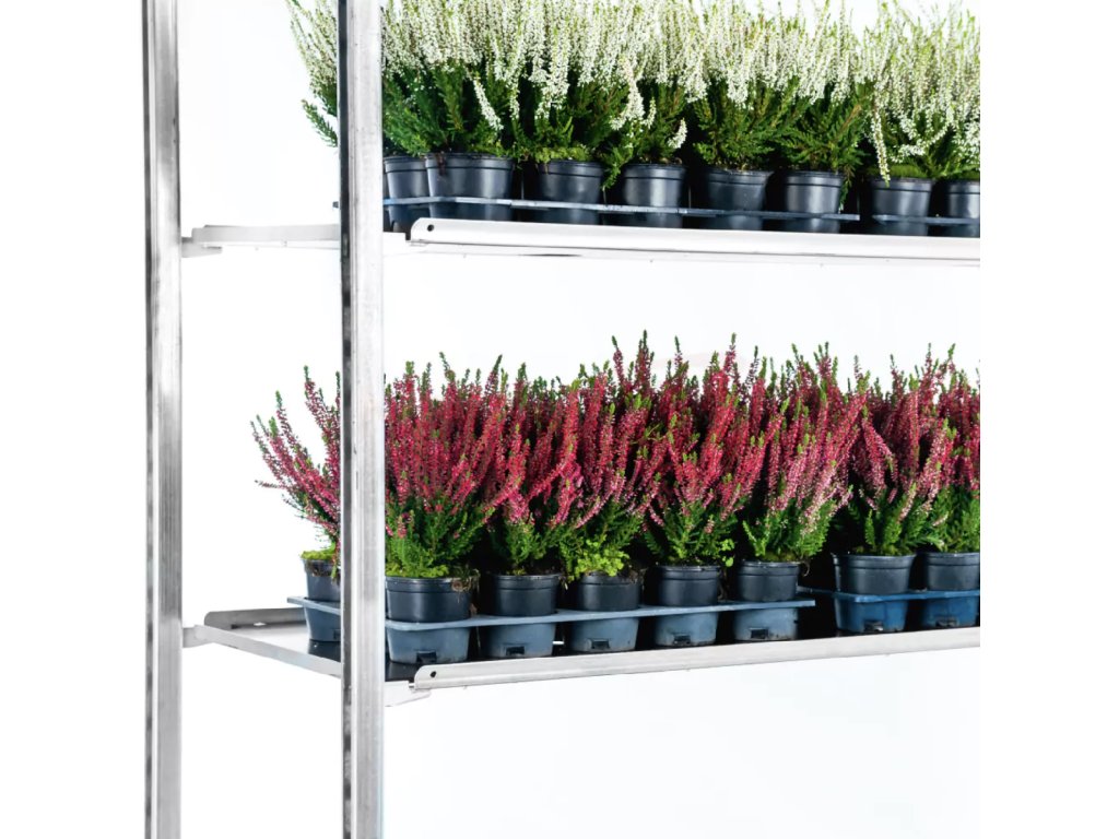 Dánské nebo holandské květinové vozíky jsou ideálním prostředkem pro přepravu sazenic na plantážích, květinových trzích a v květinářstvích. Regály plní i roli prezentace květin. Díky tomu může zákazník vidět produkty, které chce koupit, ze všech stran. Díky rozměrům jsou naše vozíky ideální také pro expozice v zahradních centrech, na výstavách rostlin a jako mobilní skladové regály. Vozíky jsou stohovatelné. Po skončení květinové sezóny lze tedy vozíky složit, aby nezabíraly místo.