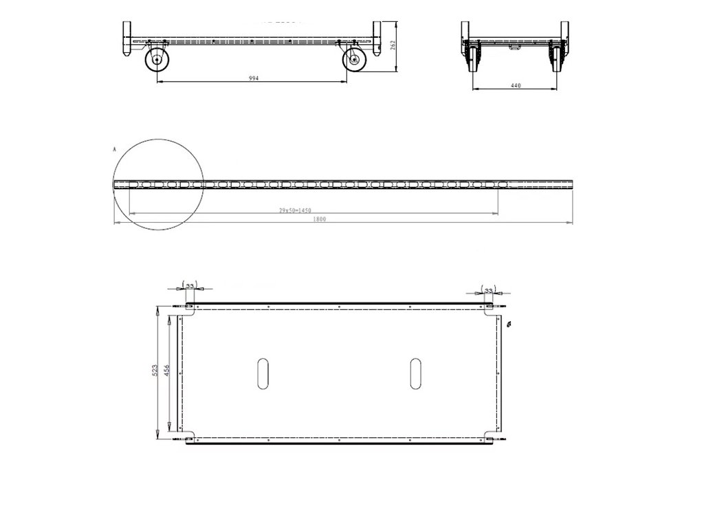 - 3 police a základnu o rozměrech 126 × 55 cm