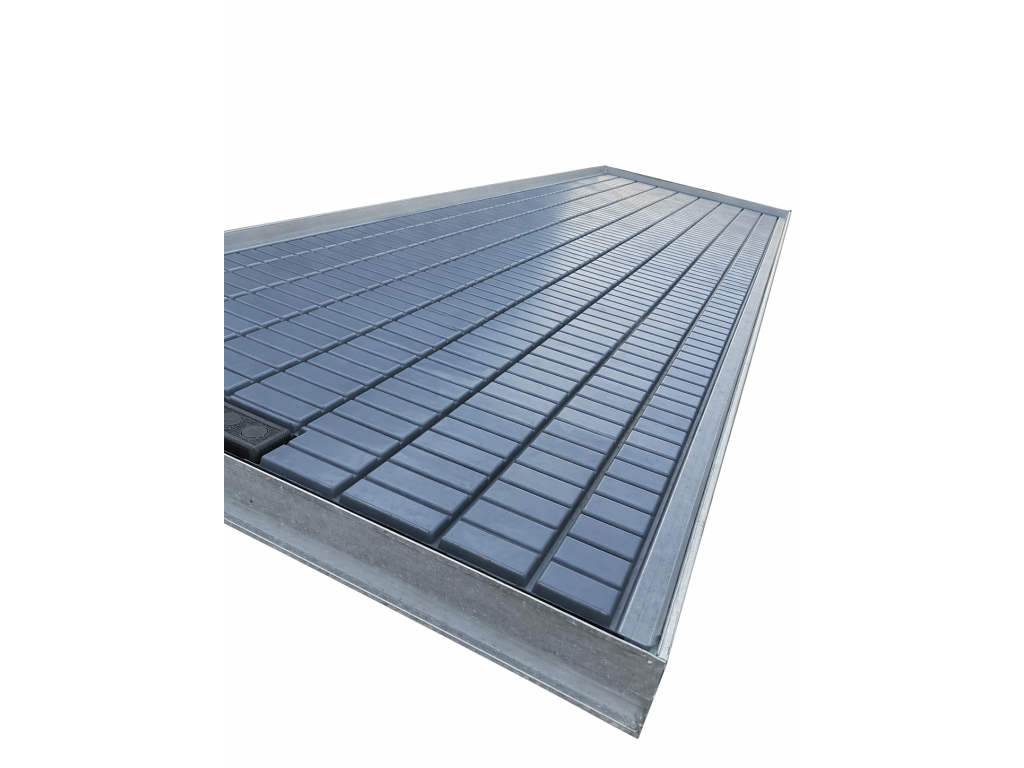 Nový zalévací stůl s hliníkovým rámem a plastovou plochou Rozměry: 4,50 m × 1,69 m