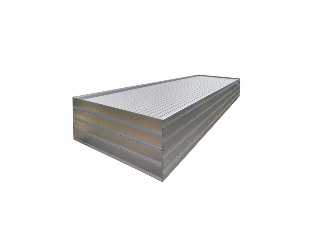 Zalévací stůl s použitým hliníkovým rámem a novou plastovou plochou Rozměry: 6,06 m × 1,63 m