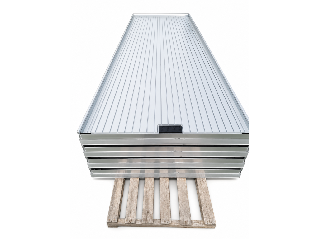 Nový zalévací stůl s hliníkovým rámem a plastovou plochou Rozměry: 4,50 m × 1,69 m