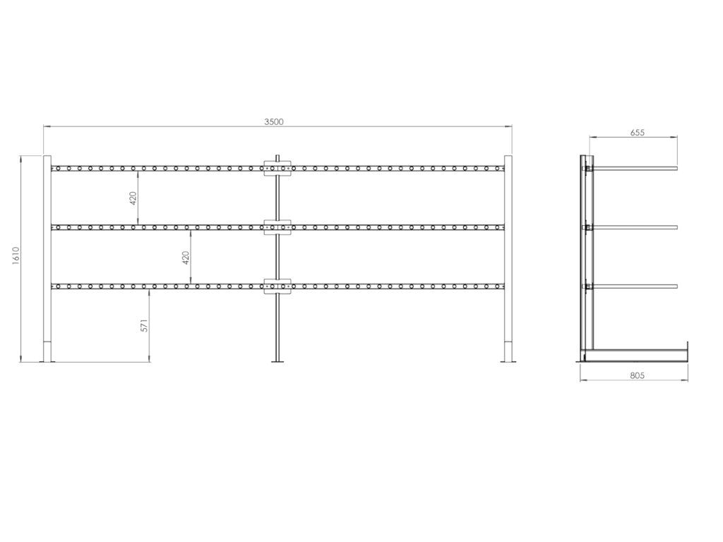 Regál pro vertikální skladování 3500 × 1610 × 805 mm