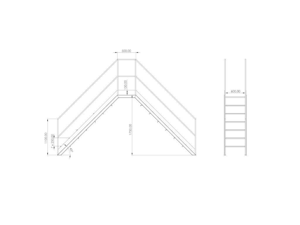 Střešní přelez přes atiku, servisní přechod (plošina) h 1750 × 500 mm