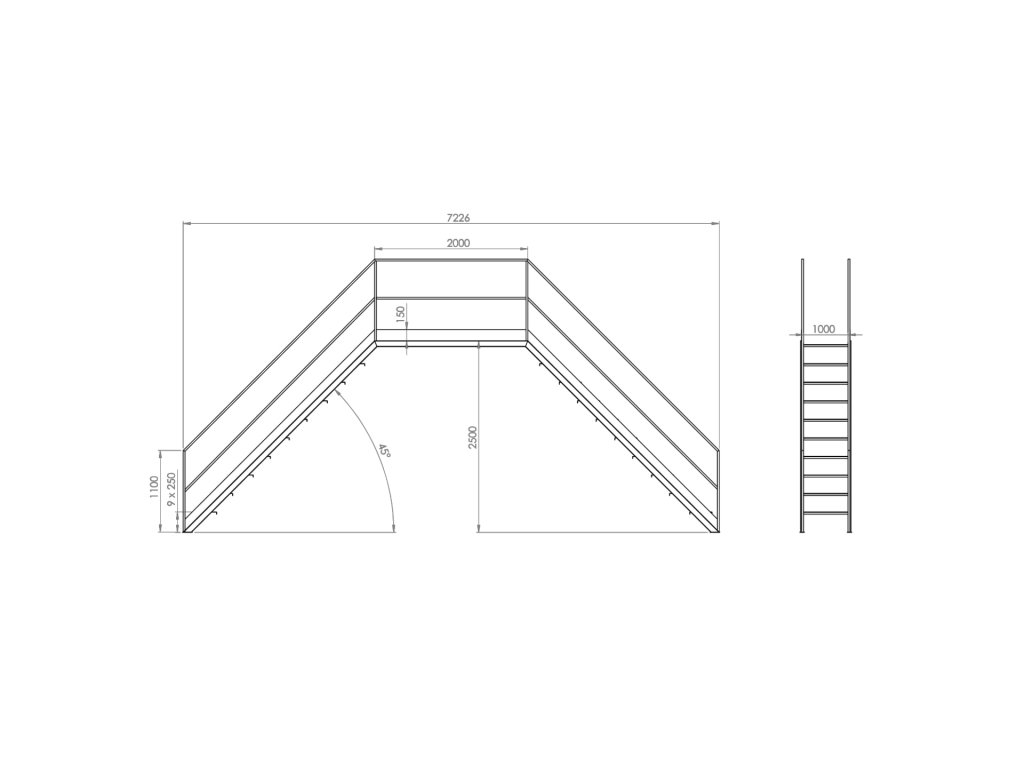 Střešní přelez přes atiku, servisní přechod (plošina) h 2500 × 1000 mm