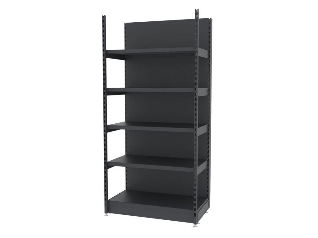 Zesílený nástěnný obchodní regál MAGO H-210 cm L-103 cm G-68 cm – základní modul, grafitový