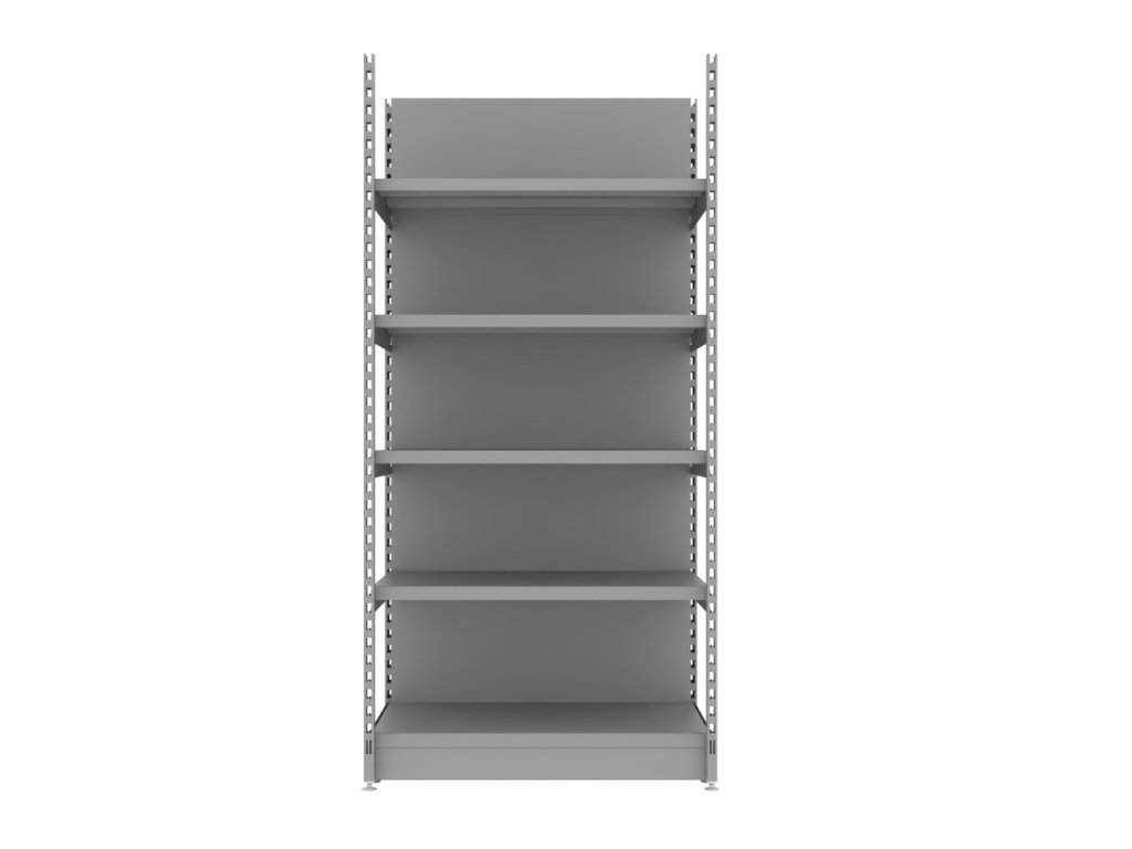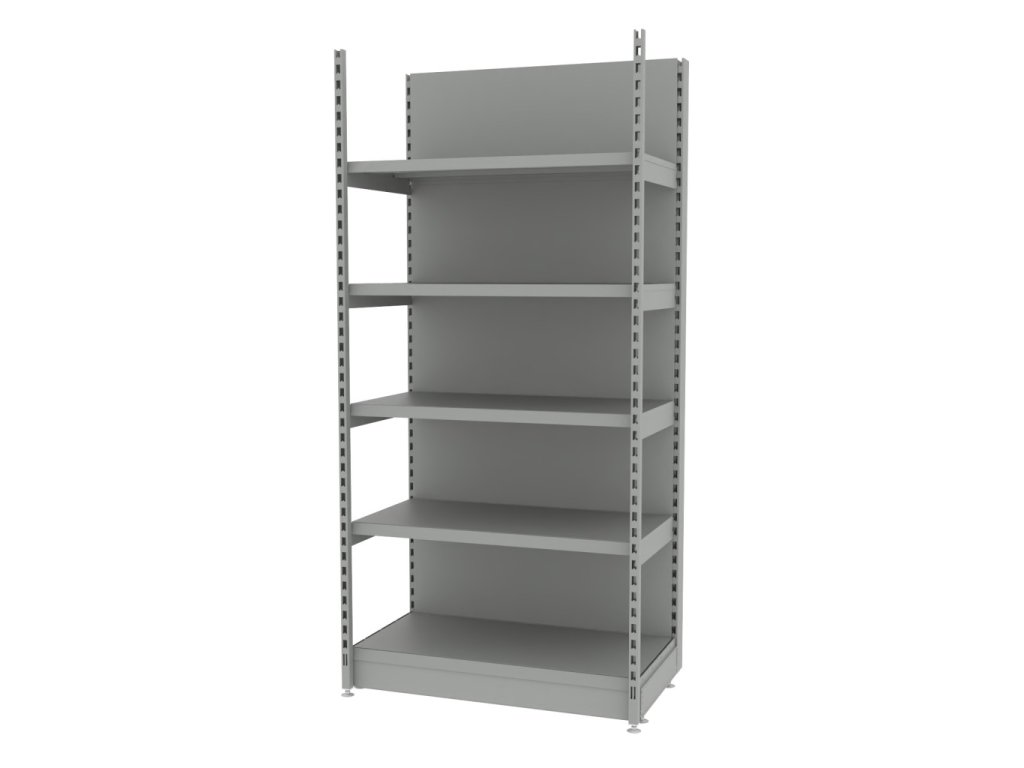 Zesílený nástěnný obchodní regál MAGO H-210 cm L-103 cm G-68 cm – základní modul, světle šedý