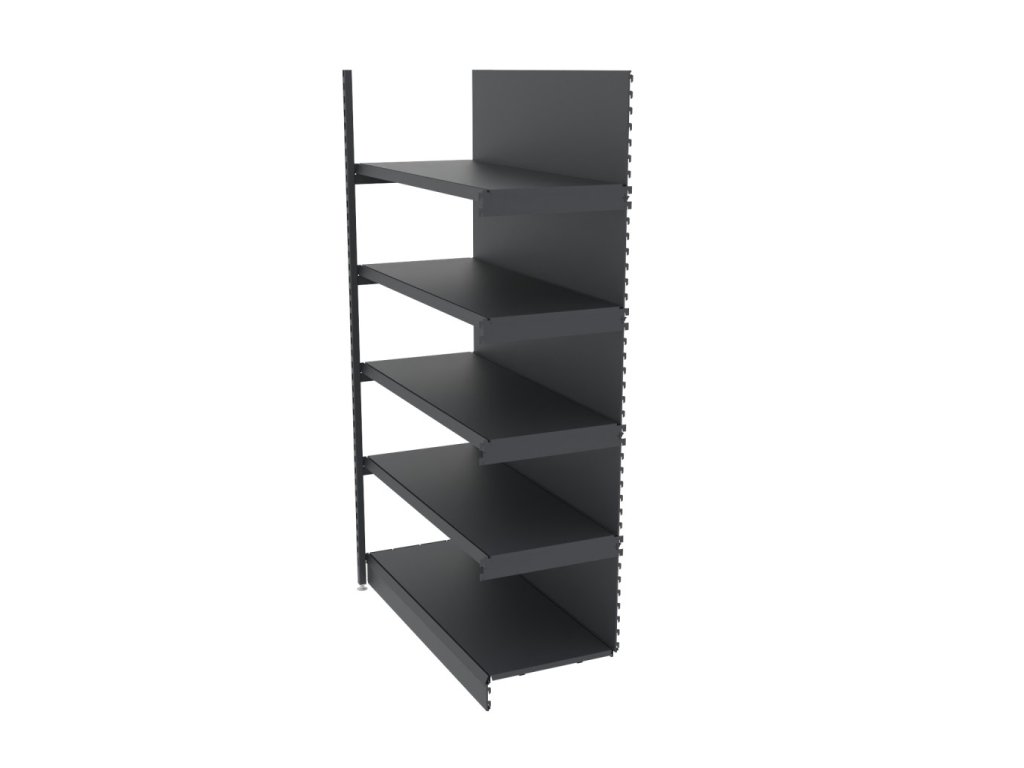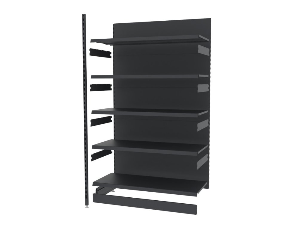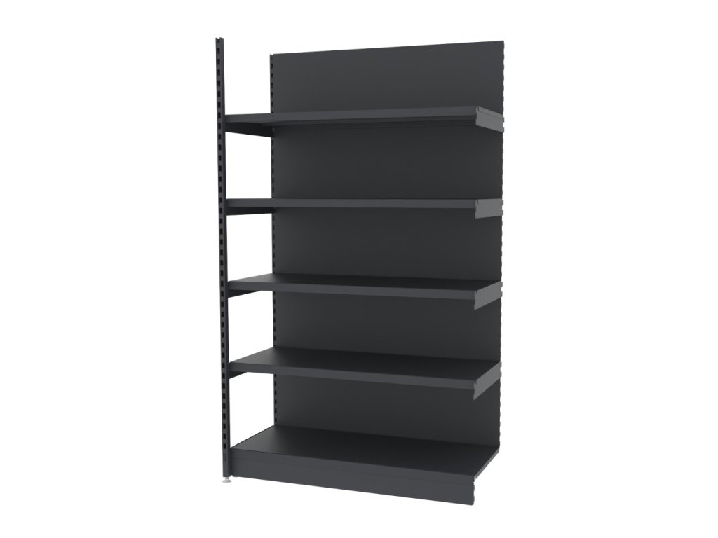 Zesílený nástěnný obchodní regál MAGO H-210 cm L-126,5 cm G-68 cm – přídavný modul, grafitový