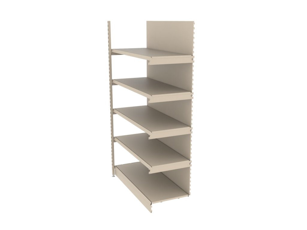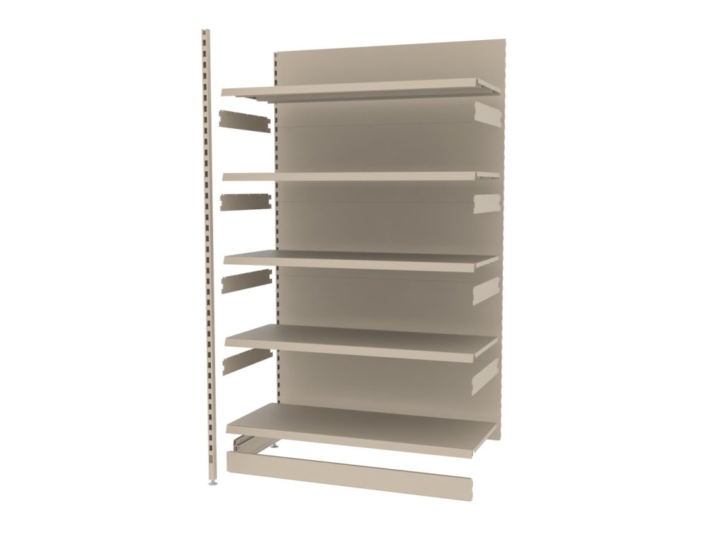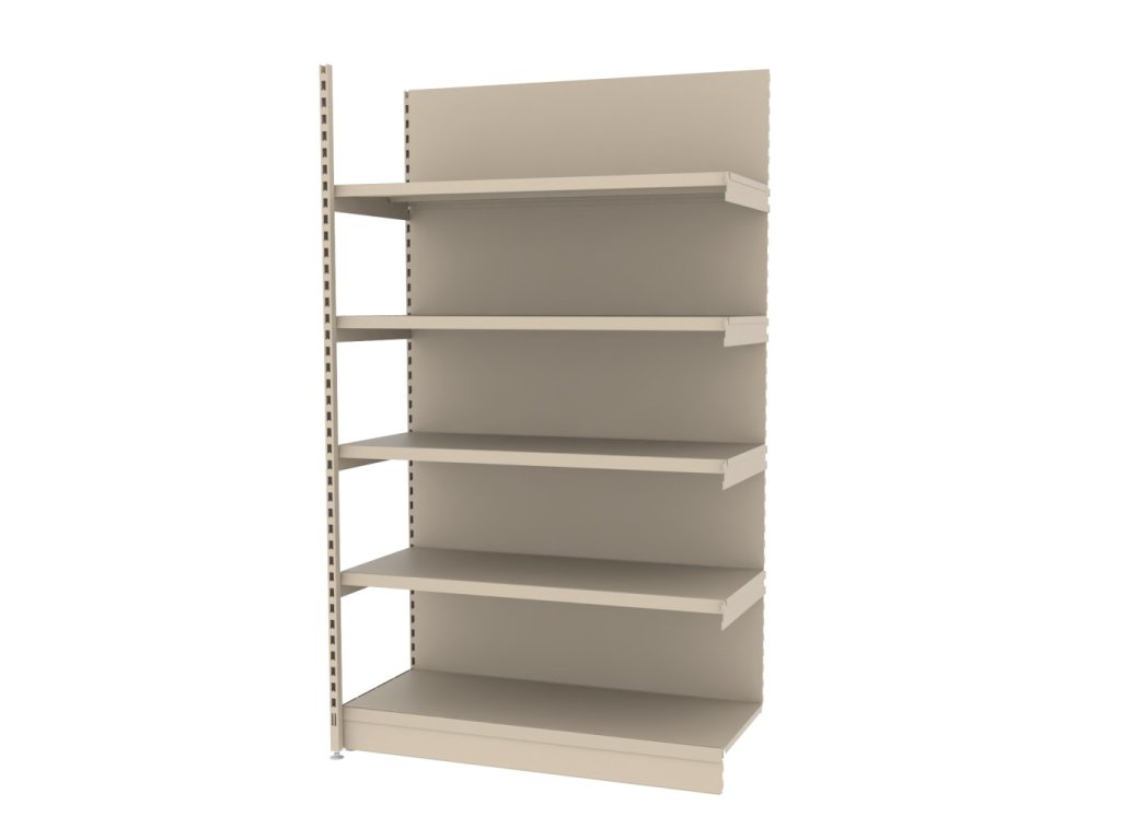 Zesílený nástěnný obchodní regál MAGO H-210 cm L-126,5 cm G-68 cm – přídavný modul, krémový