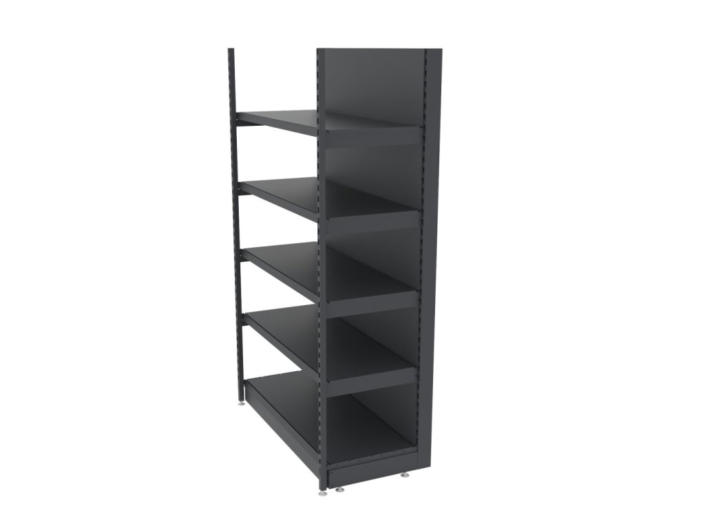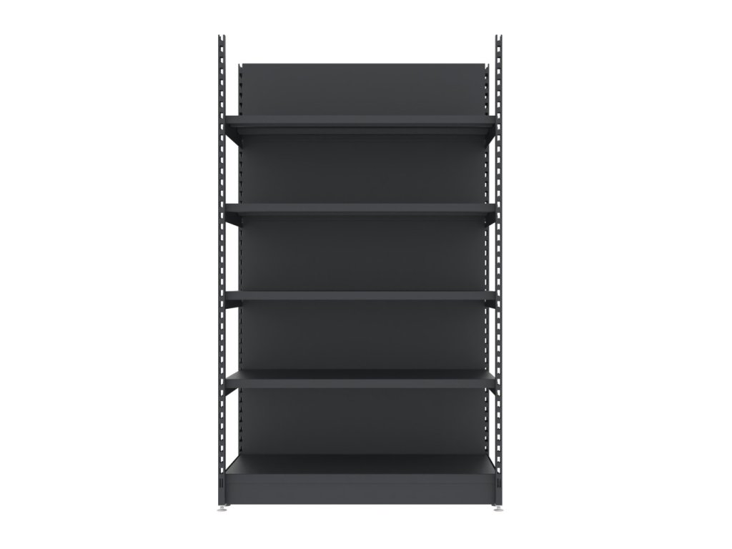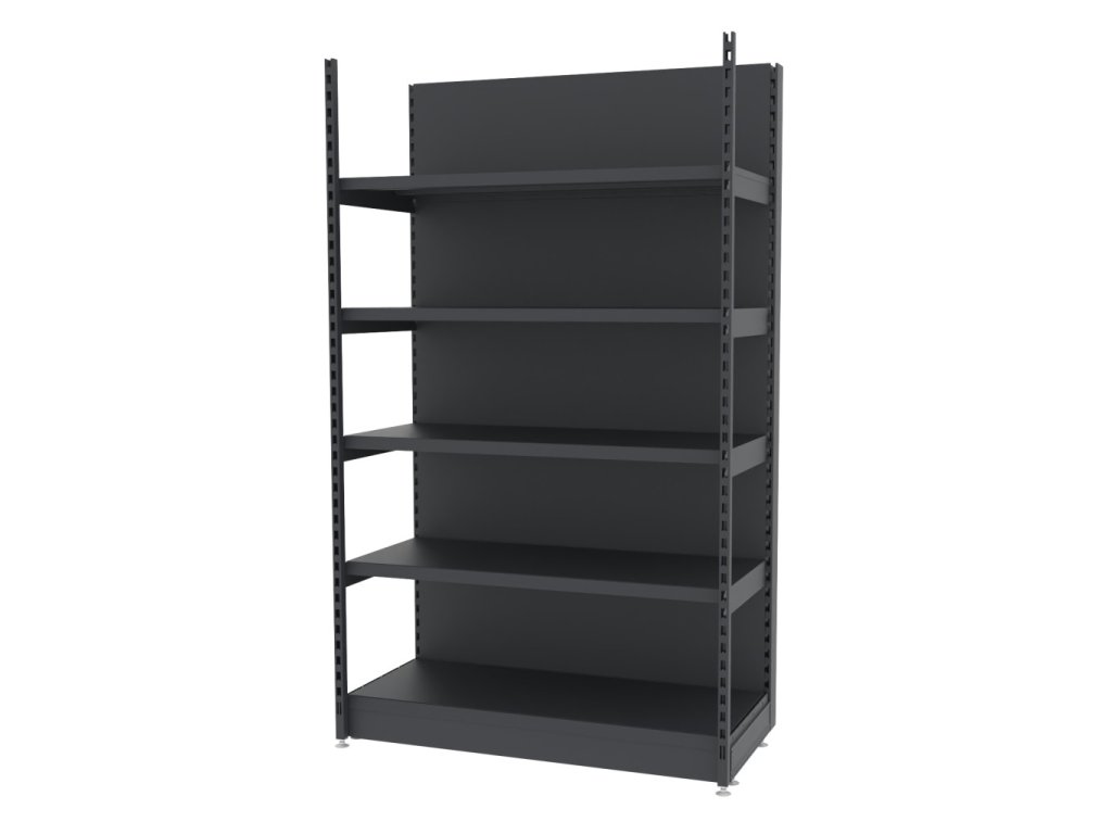 Zesílený nástěnný obchodní regál MAGO H-210 cm L-128 cm G-68 cm – základní modul, grafitový