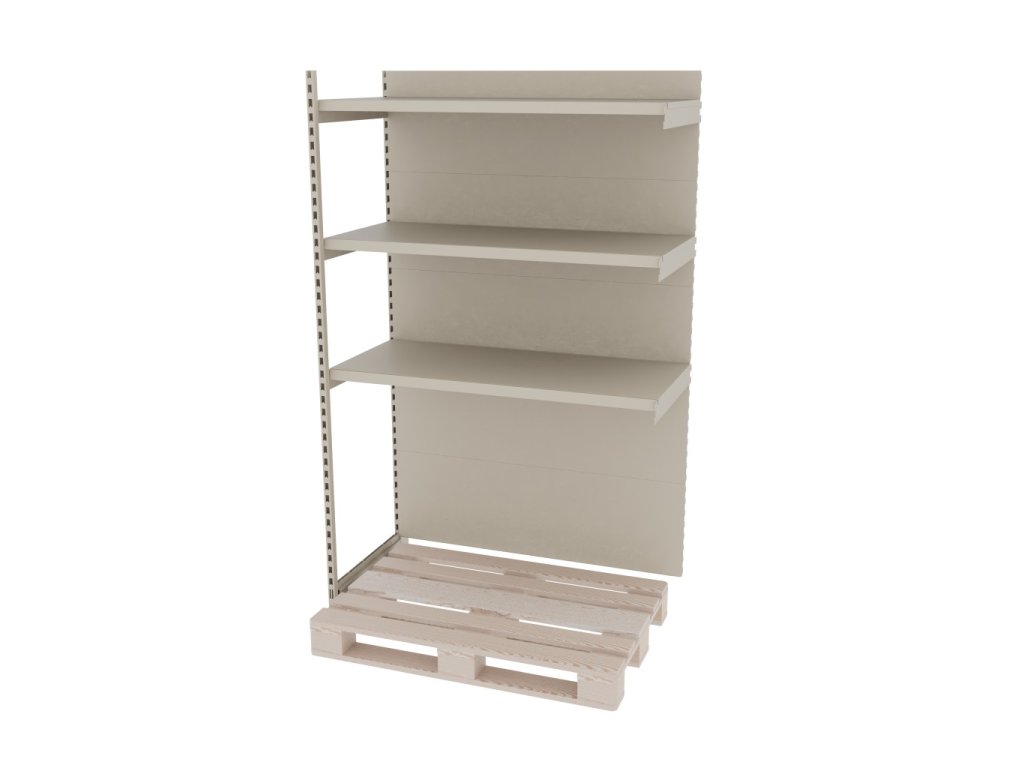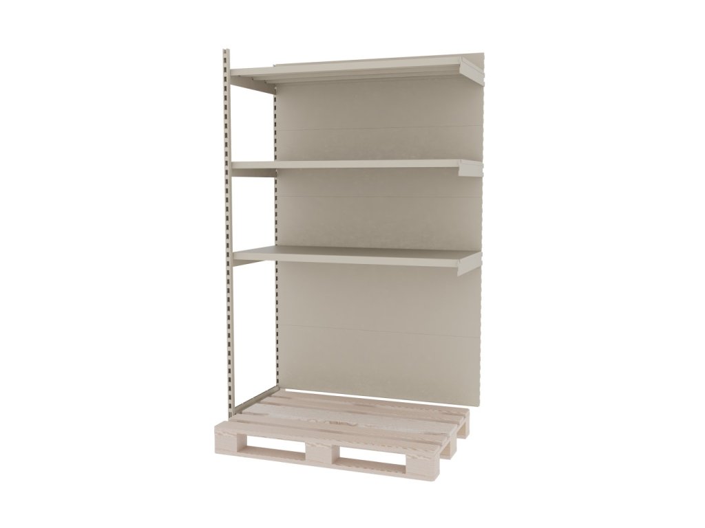 Zesílený nástěnný obchodní regál pro paletu MAGO H-210 cm L-126,5 cm G-68 cm – přídavný modul, krémový