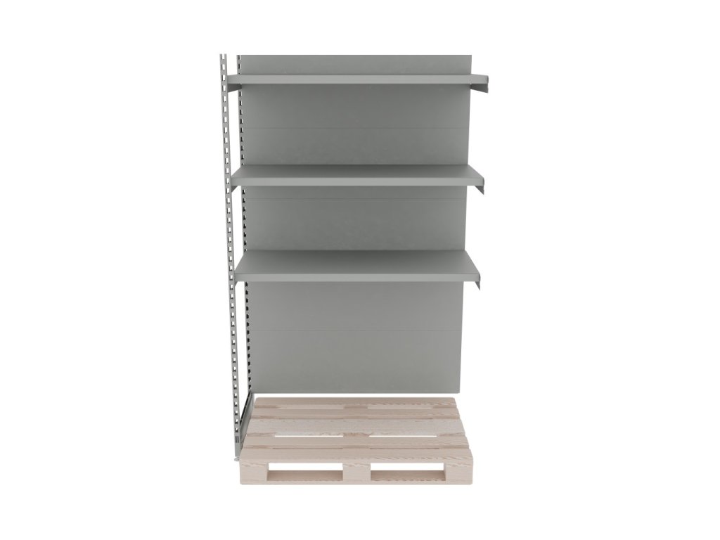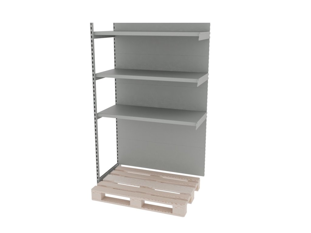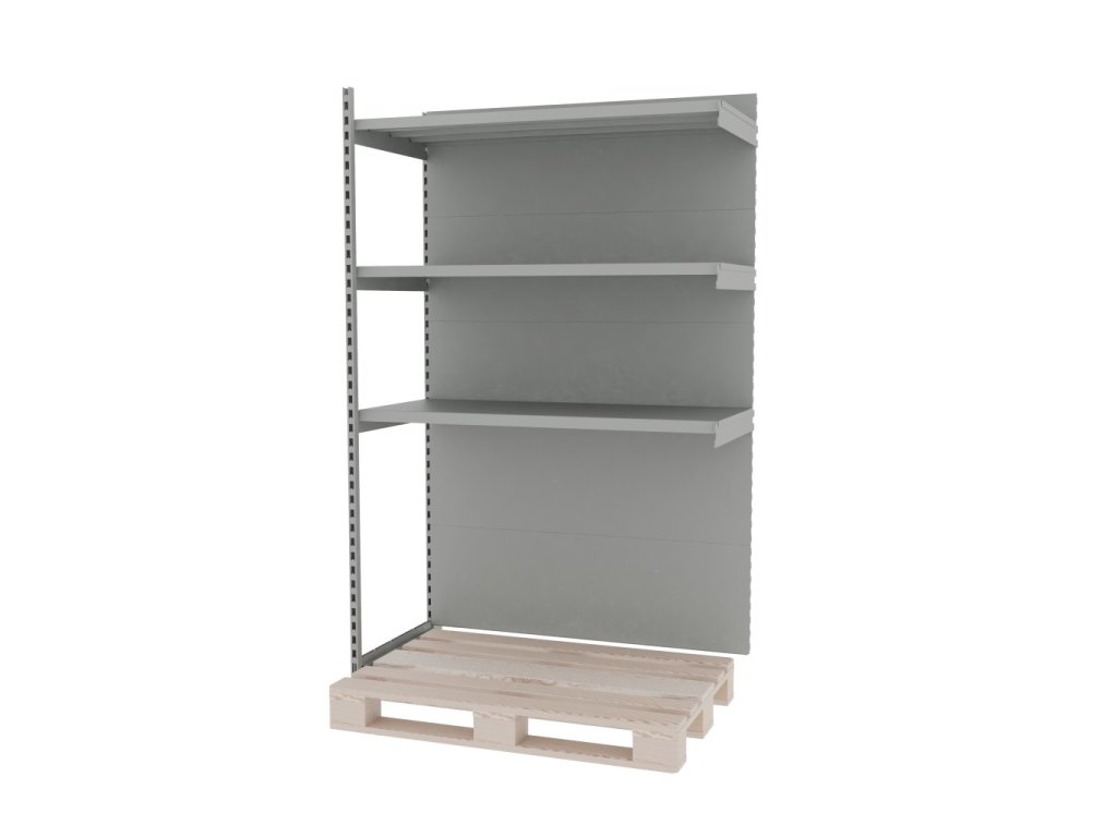 Zesílený nástěnný obchodní regál pro paletu MAGO H-210 cm L-126,5 cm G-68 cm – přídavný modul, světle šedý