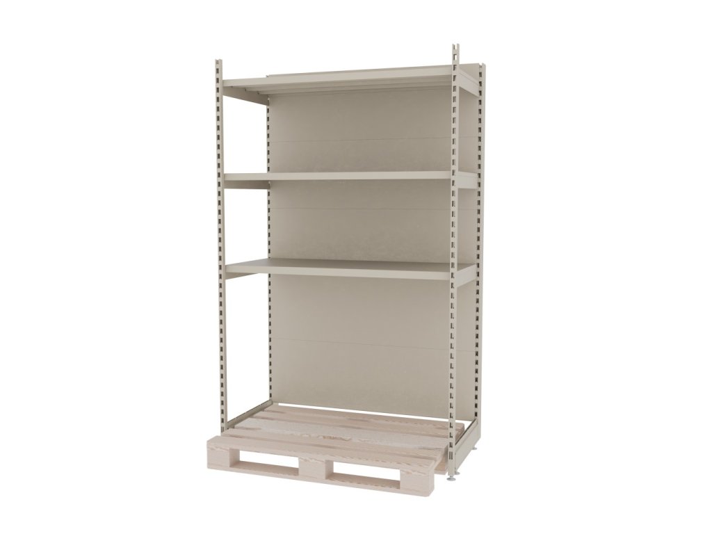 Zesílený nástěnný obchodní regál pro paletu MAGO H-210 cm L-128 cm G-68 cm – základní modul, krémový