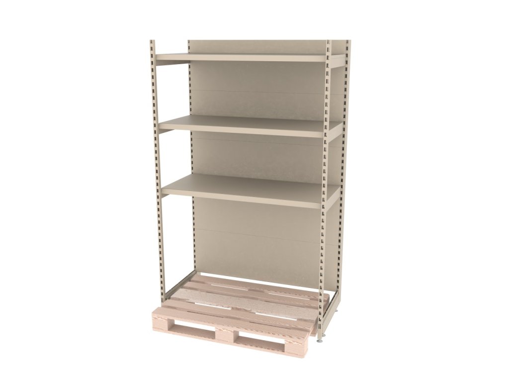 * Možnost umístění palety mezi nohami regálu.