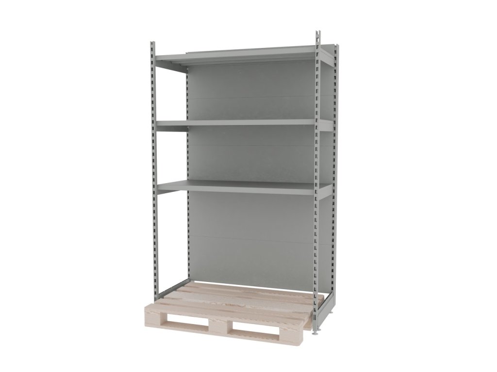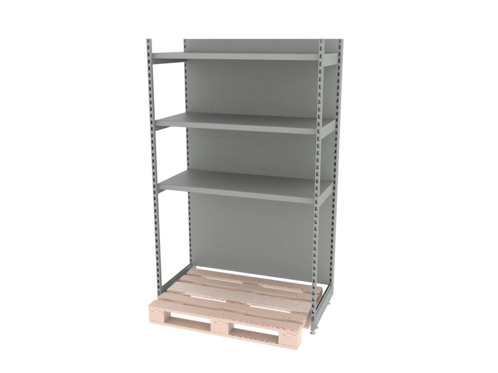 * Možnost umístění palety mezi nohami regálu.