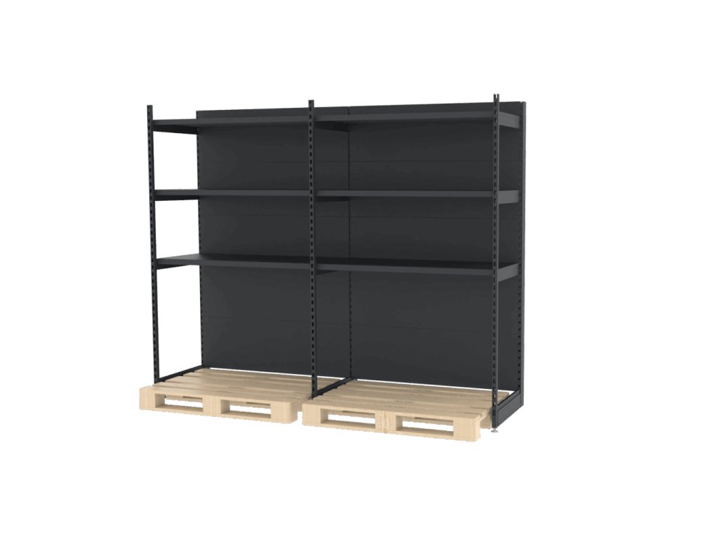 Zesílený nástěnný obchodní regál pro paletu MAGO H-210 cm L-253 cm G-68 cm – grafitový