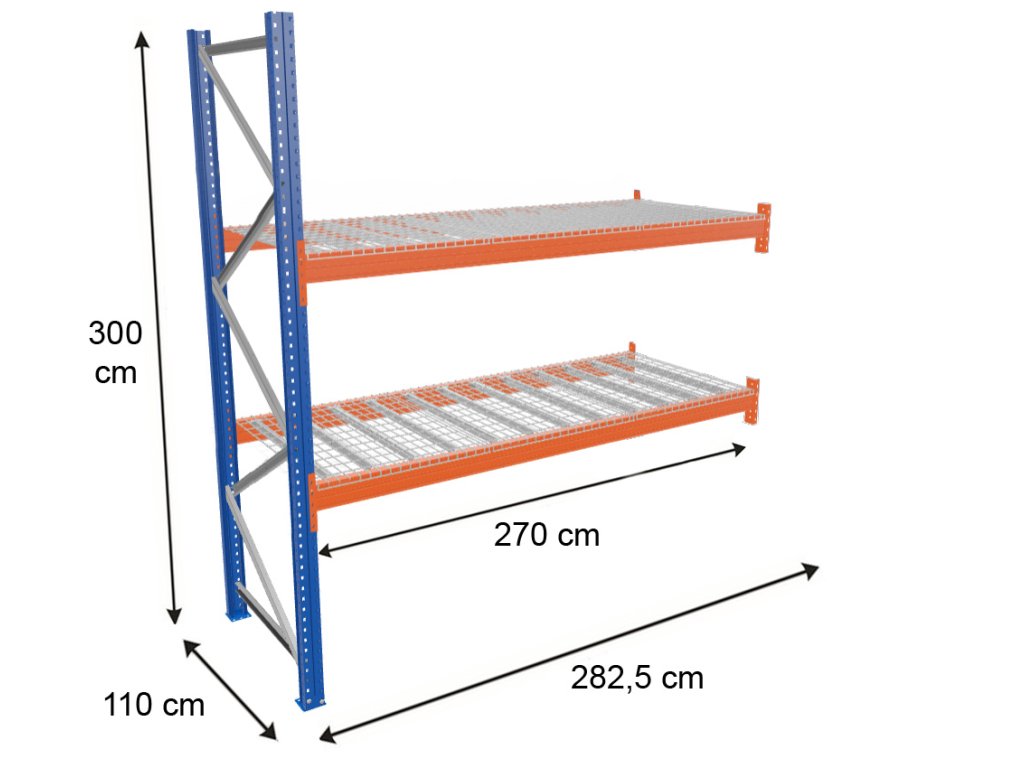Paletový regál (9 palet), výška 300 cm, šířka: 282,5 cm, hloubka: 110 cm - modul rozšíření (použitý)
