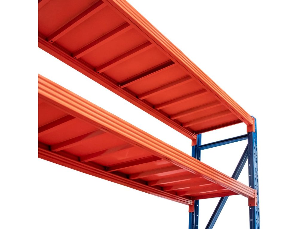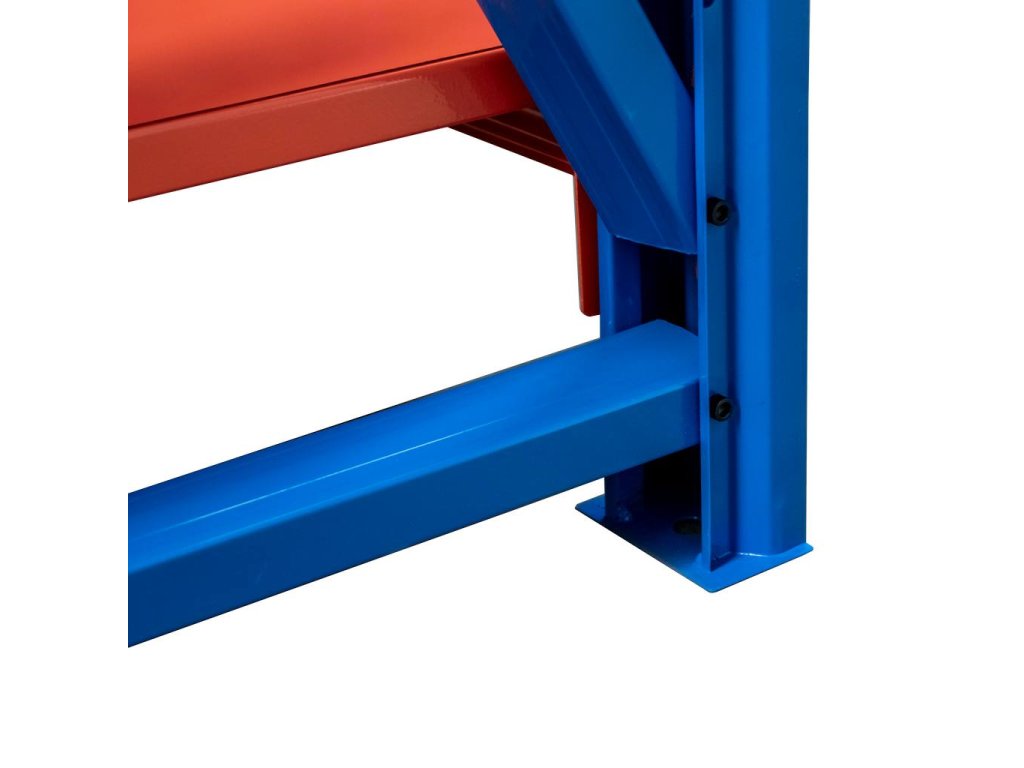 Standardní verze regálu obsahuje 4 police. Lze jej snadno rozšířit díky možnosti dokoupit další police. Každá police se skládá ze 2 nosníků a kovových výplní.