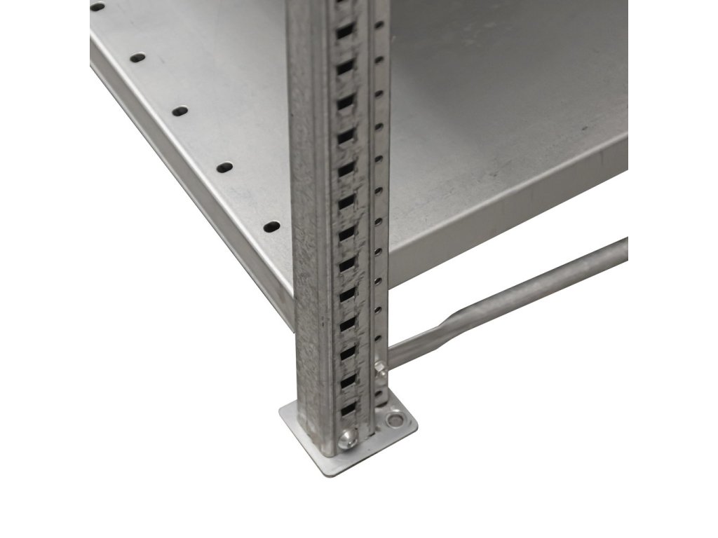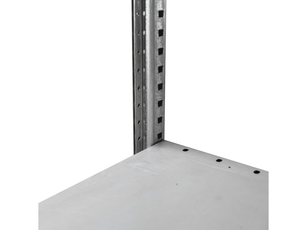 Modulární skladové regály představují pevnou a odolnou konstrukci, která umožňuje skladování velkého množství zboží. Kovový regál je vyroben z kvalitní pozinkované oceli, která zajišťuje vysokou pevnost a dlouhou životnost. Regál má 5 policové úrovně s nosností 100 kg na každou polici (při rovnoměrném rozložení zatížení).