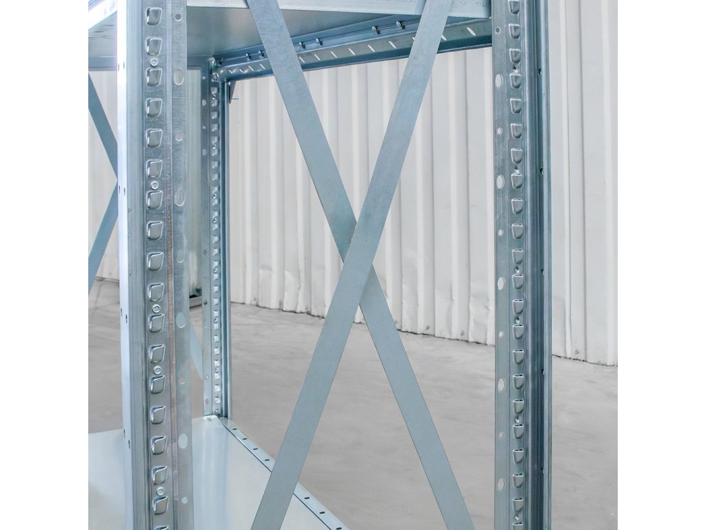 Výhodou tohoto typu regálu je možnost vytvoření souvislé řady regálů propojením základního modulu s dostupnými přístavnými moduly. Kovový regál je snadno rozšiřitelný dokoupením dalších polic, jejichž výšku lze nastavovat po 4 cm.
