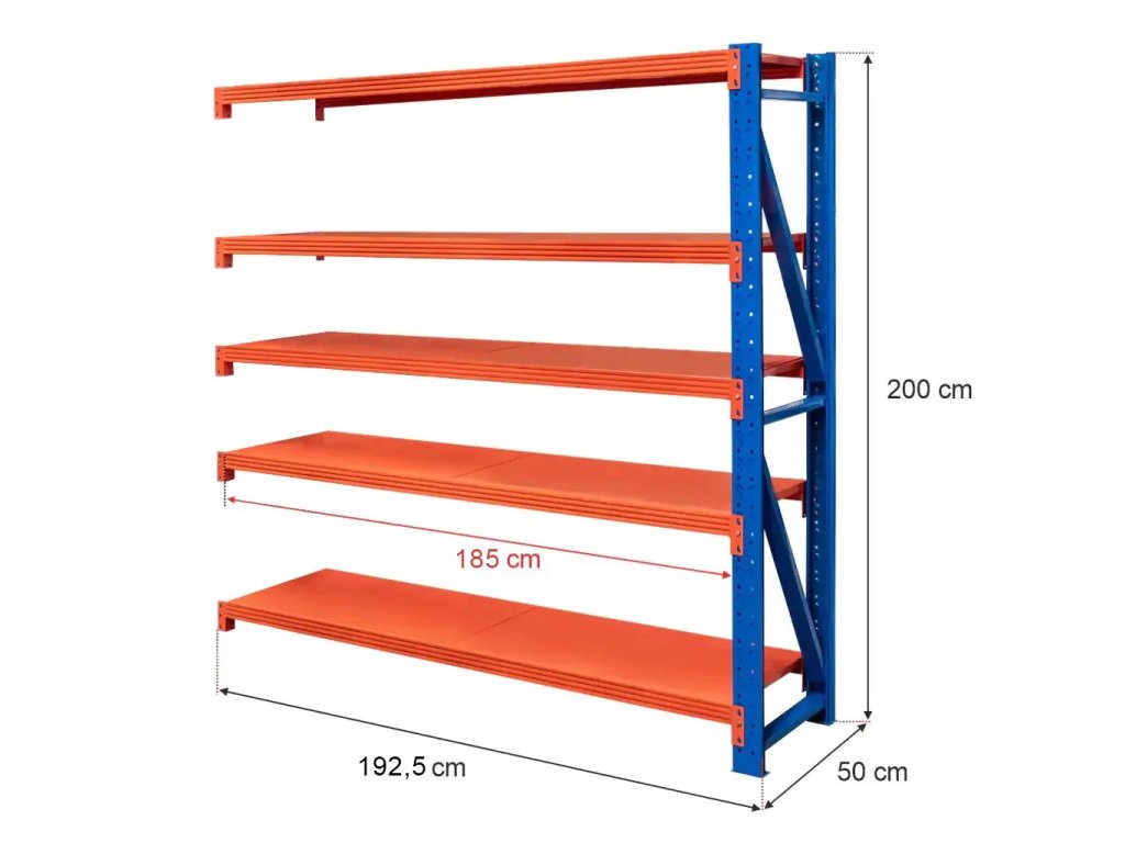 Kovový skladový regál s 5 -ti policemi FORTIS 200x192,5x50 cm, přídavný modul