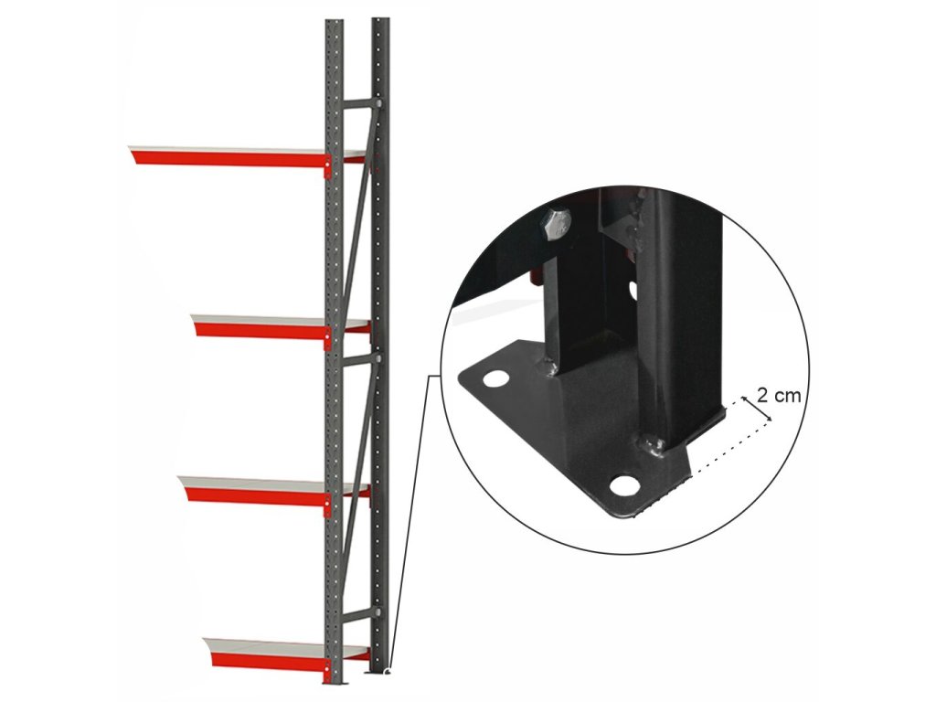 Perforovaný sloupek umožňuje nastavení výšky polic v intervalech po 7,5 cm. Velkou výhodou je možnost přizpůsobení výšky police podle skladovaných produktů. Uživatel může kdykoliv změnit uspořádání jednotlivých úrovní.
