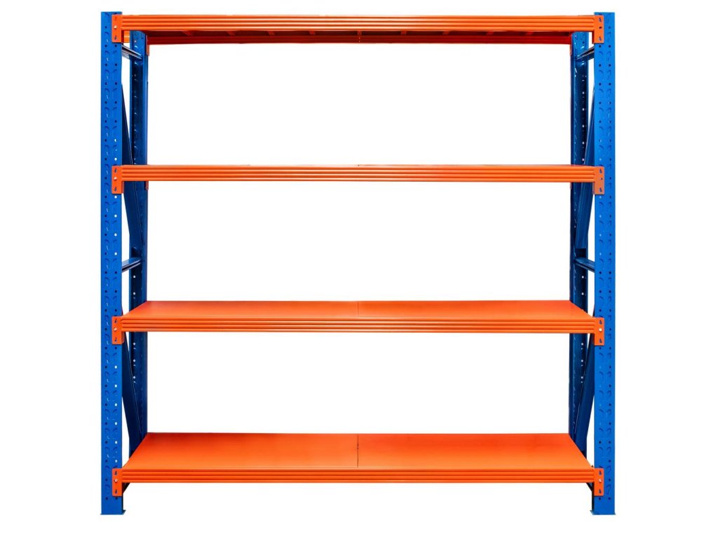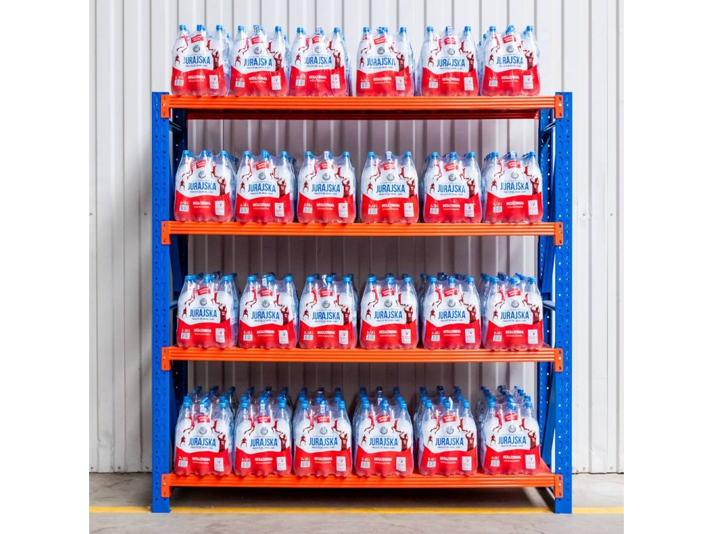 Standardní verze regálu obsahuje 4 police. Lze jej snadno rozšířit díky možnosti dokoupit další police. Každá police se skládá ze 2 nosníků a kovových výplní.