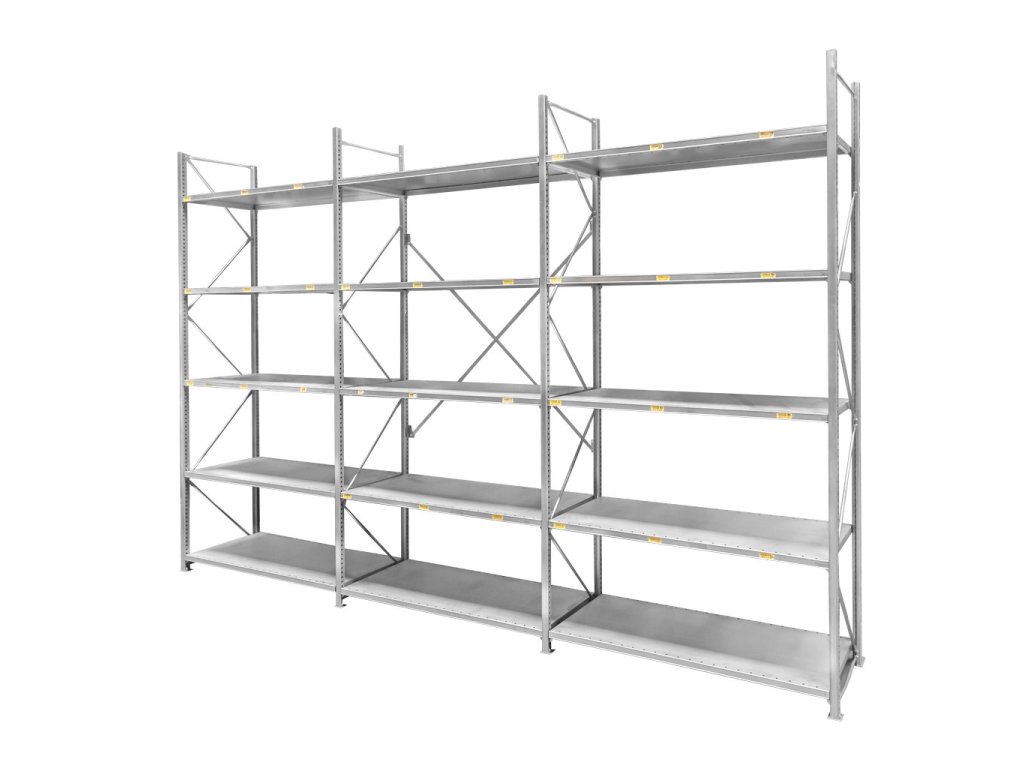 Přídavné moduly umožňují vytvoření funkčního skladového prostoru a zajišťují maximální využití užitné plochy místnosti. Regál v přídavné variantě obsahuje 5 polic, rám a křížové ztužení. Lze jej snadno rozšiřovat díky možnosti dokoupení dalších polic nebo celých přídavných modulů.