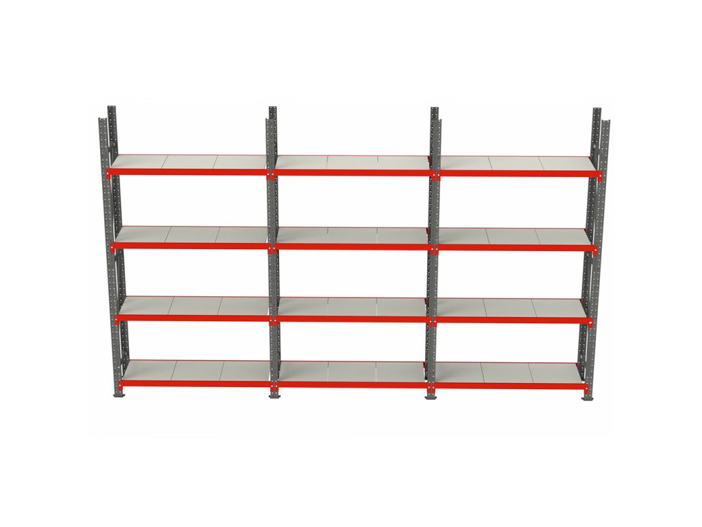 Skladový regál FORTIS, 12policový, výška 200 cm, délka 484 cm, hloubka 40 cm