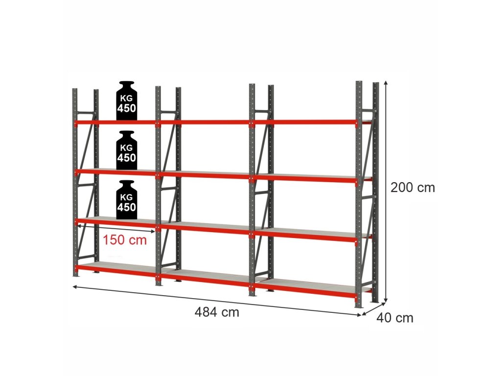 Skladový regál FORTIS 200×484×40 cm, 12policový