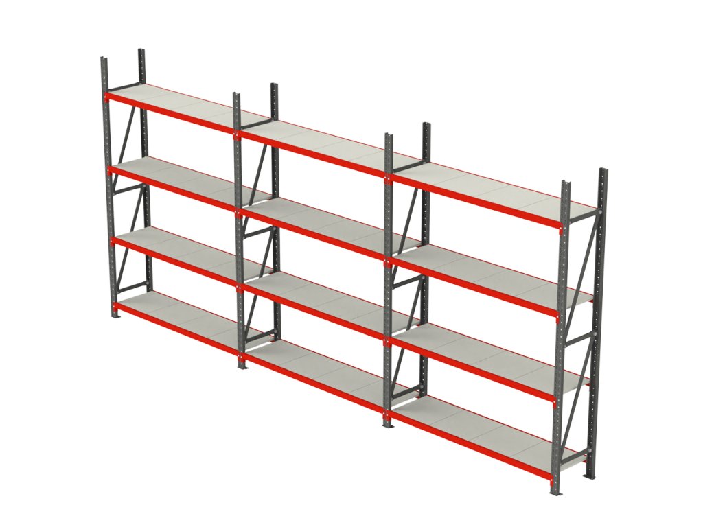 Skladový regál FORTIS, 12policový, výška 200 cm, délka 634 cm, hloubka 40 cm
