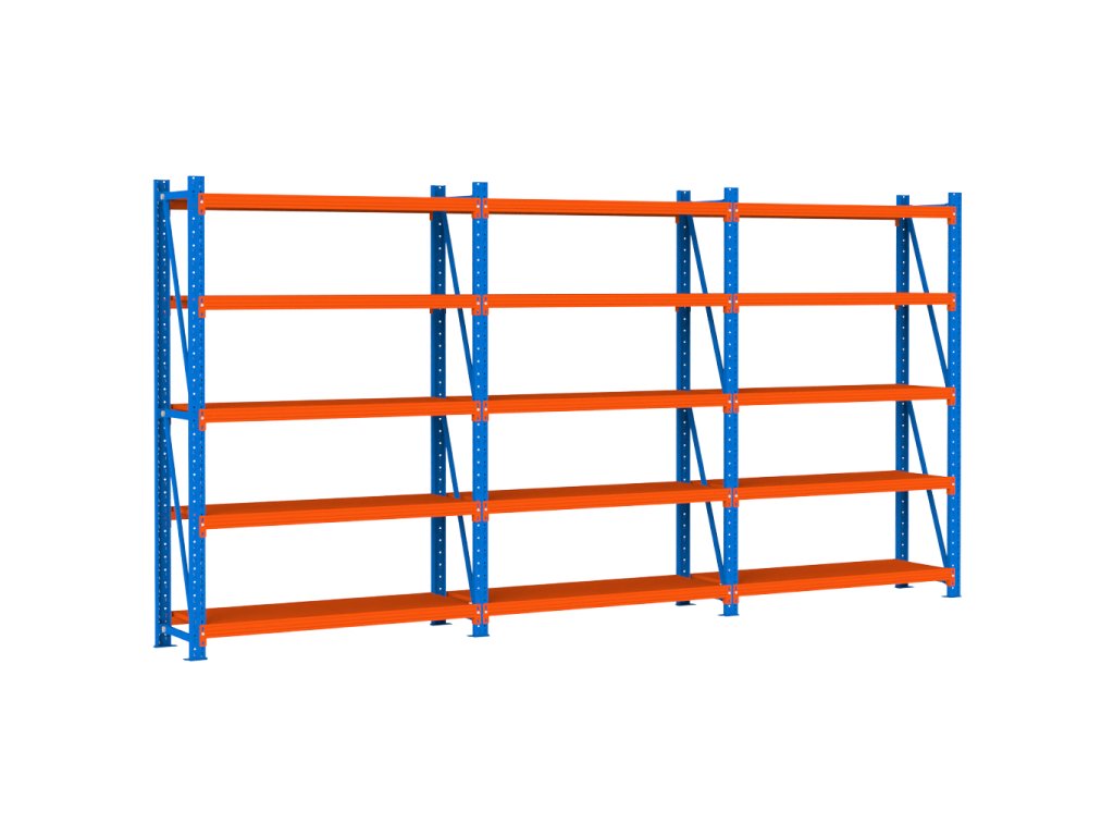 Skladový regál FORTIS, 15policový, výška 200 cm, délka 585 cm, hloubka 50 cm