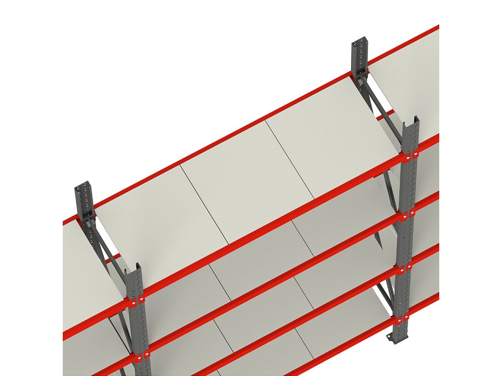 Jejich předností je nejen robustní konstrukce, ale také možnost propojování do regálových řad a nastavení výšky polic podle typu skladovaného materiálu.