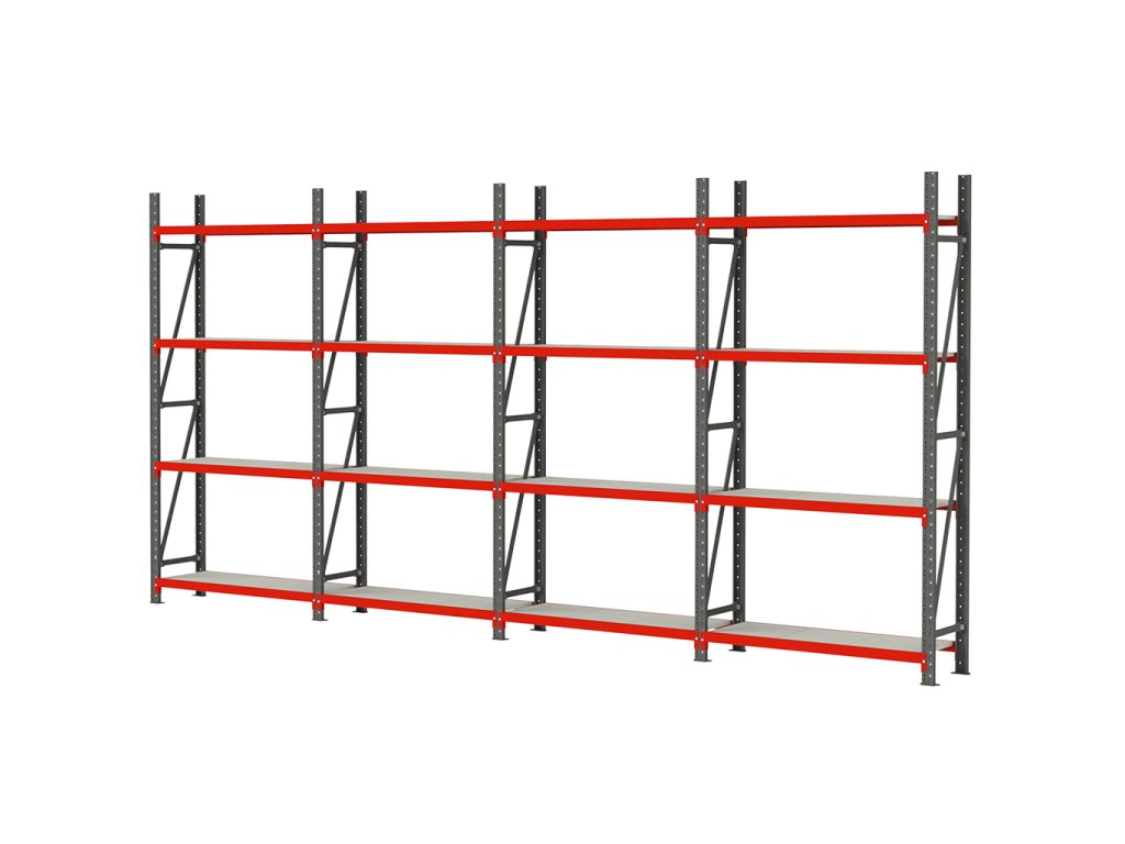 Jejich předností je nejen robustní konstrukce, ale také možnost propojování do regálových řad a nastavení výšky polic podle typu skladovaného materiálu.