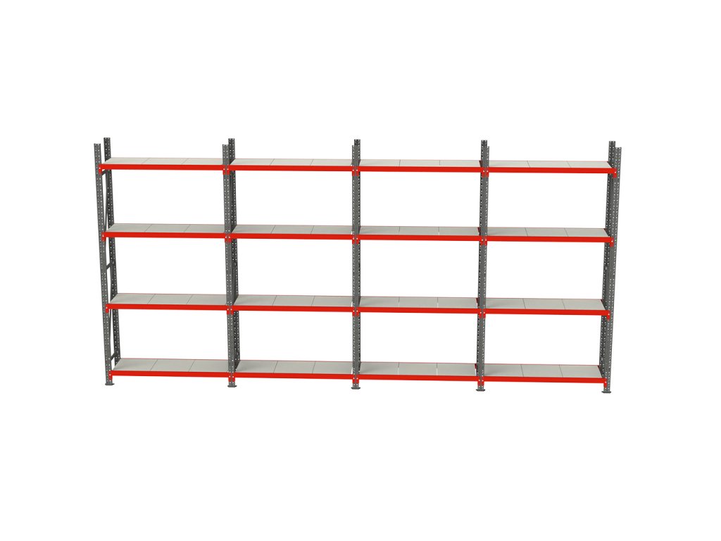 Skladový regál FORTIS, 16policový, výška 240 cm, délka 642,5 cm, hloubka 60 cm