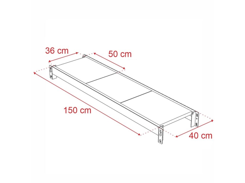 Skladový regál FORTIS v 8policové variantě nabízí velkou úložnou plochu při kompaktních rozměrech: výška 200 cm, délka 325,5 cm, hloubka 40 cm a nosnost každé police až 450 kg.