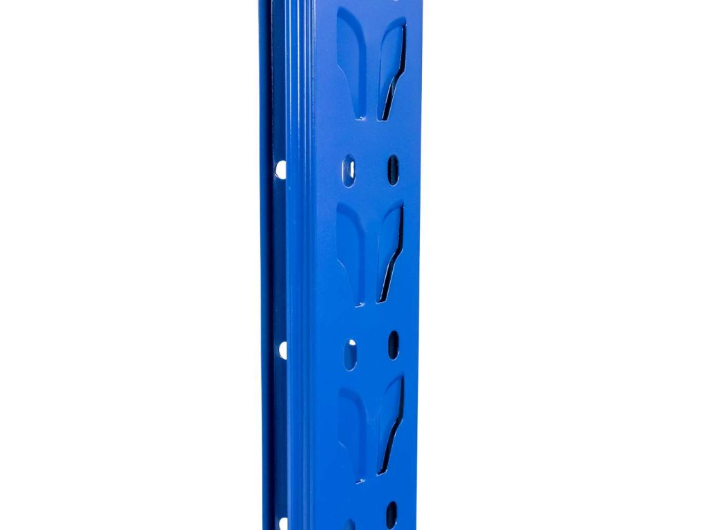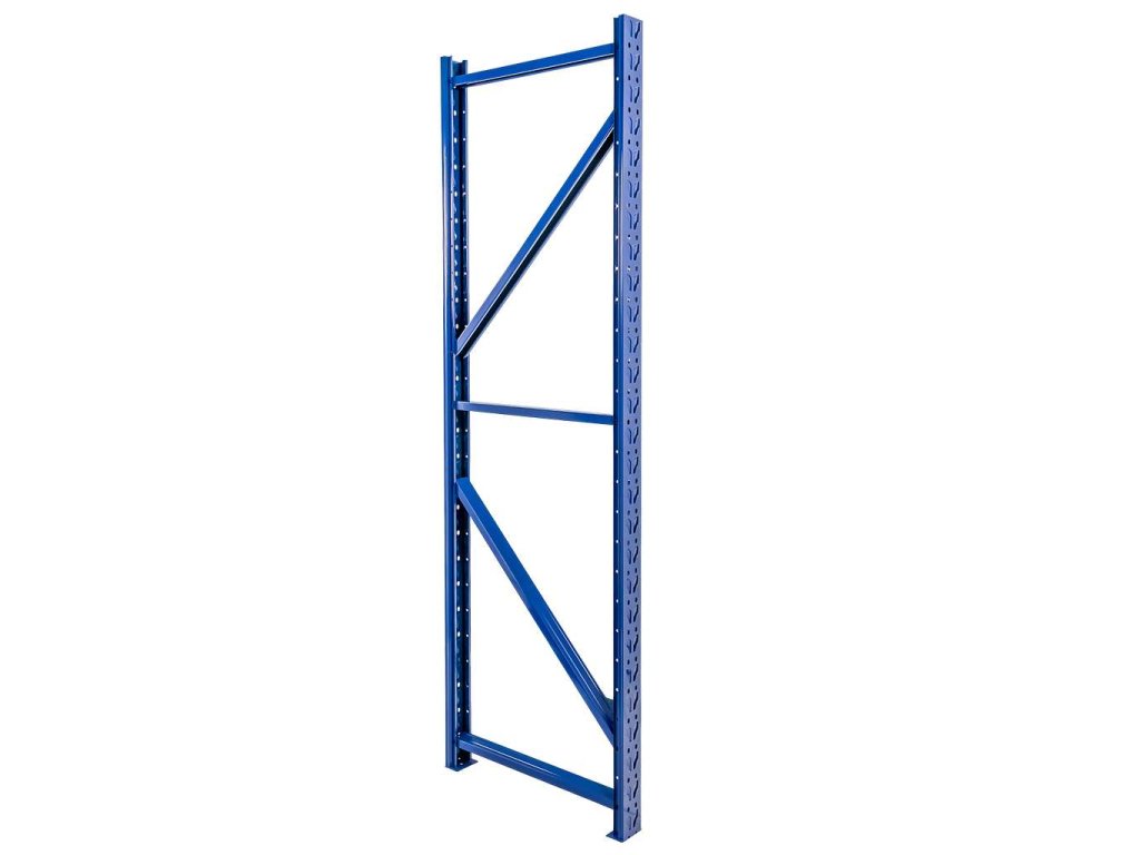 Rám skladového regálu Fortis Light je vyroben z ocelového profilu s práškovým lakováním v modré barvě.