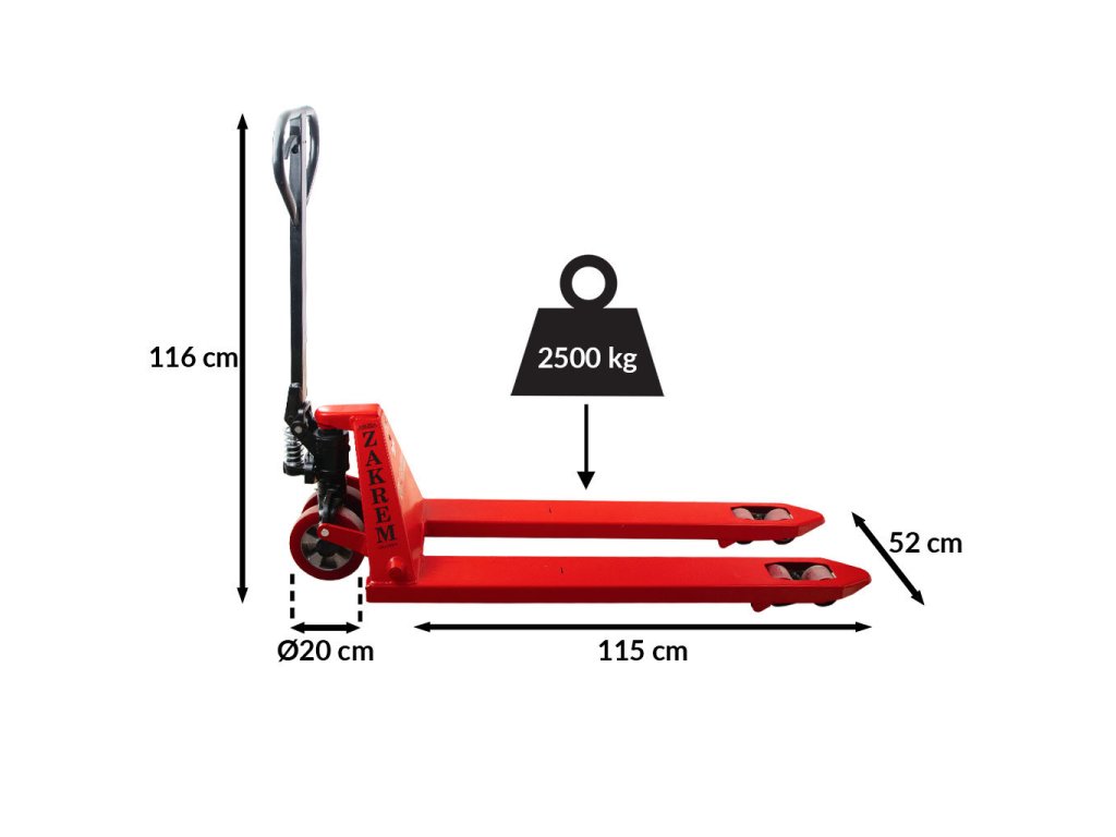 Ruční paletové vozíky polské výroby ZAKREM (paleciaky) jsou spolehlivé zařízení s univerzálním využitím. Jsou ideální pro manipulaci na krátké vzdálenosti při přepravě nákladu o hmotnosti až 2500 kg. Díky své funkčnosti umožňují rychlou, bezpečnou a efektivní práci.